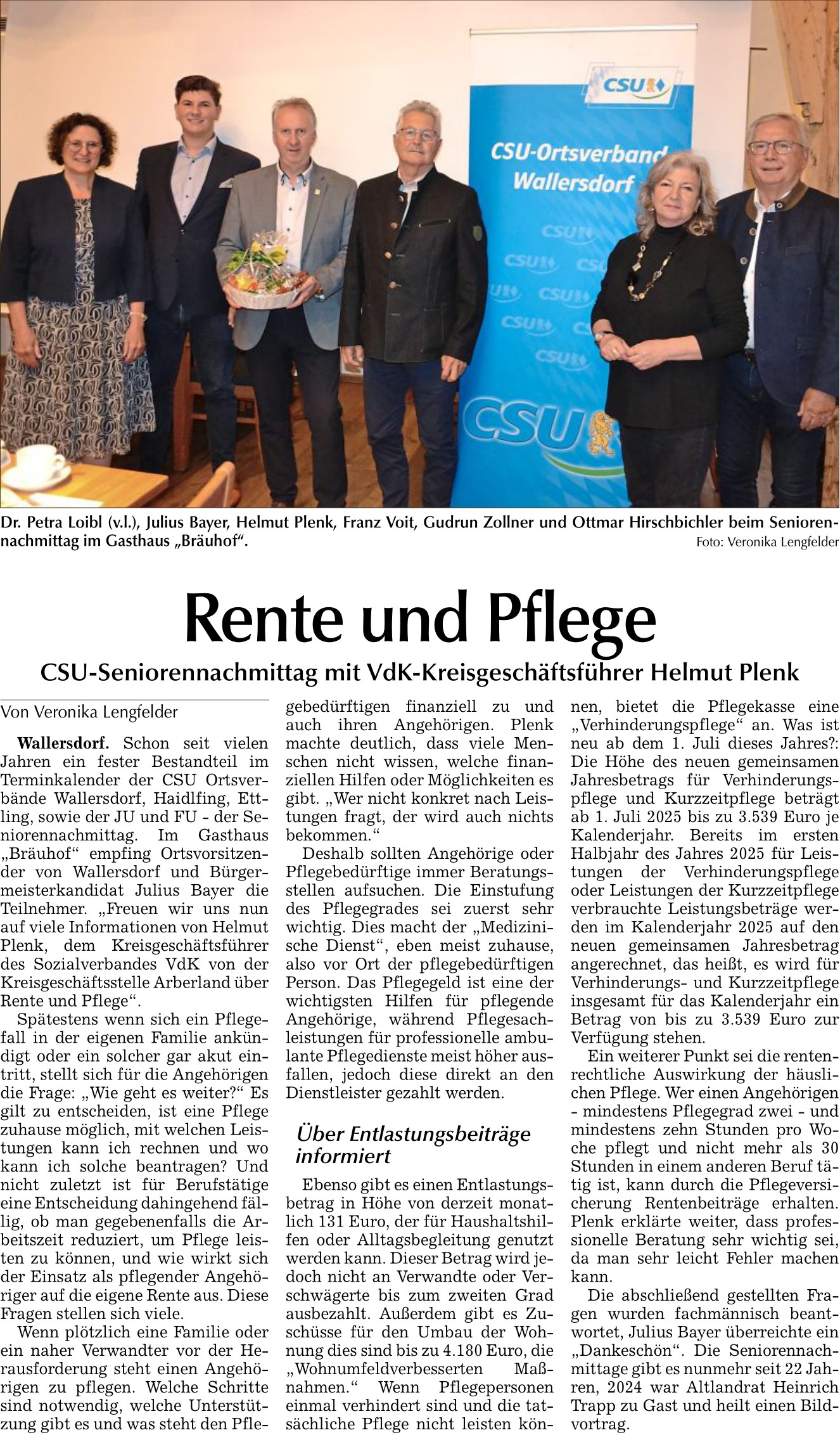 CSU-Seniorennachmittag mit VdK-Kreisgeschäftsführer Helmut Plenk