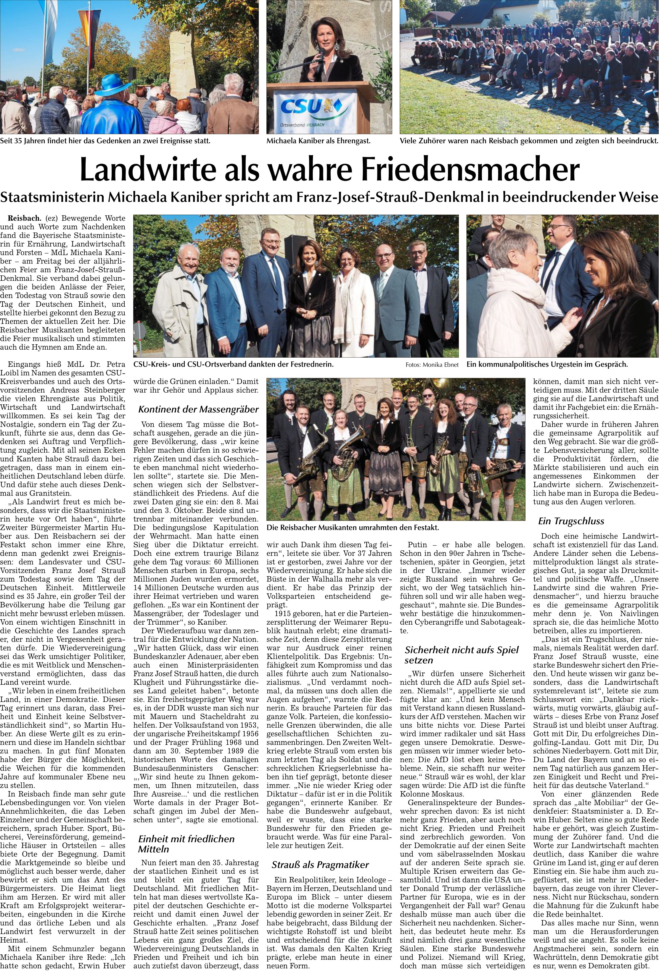 Staatsministerin Michaela Kaniber spricht am Franz-Josef-Strauß-DEnkmal in beeindruckender Weise