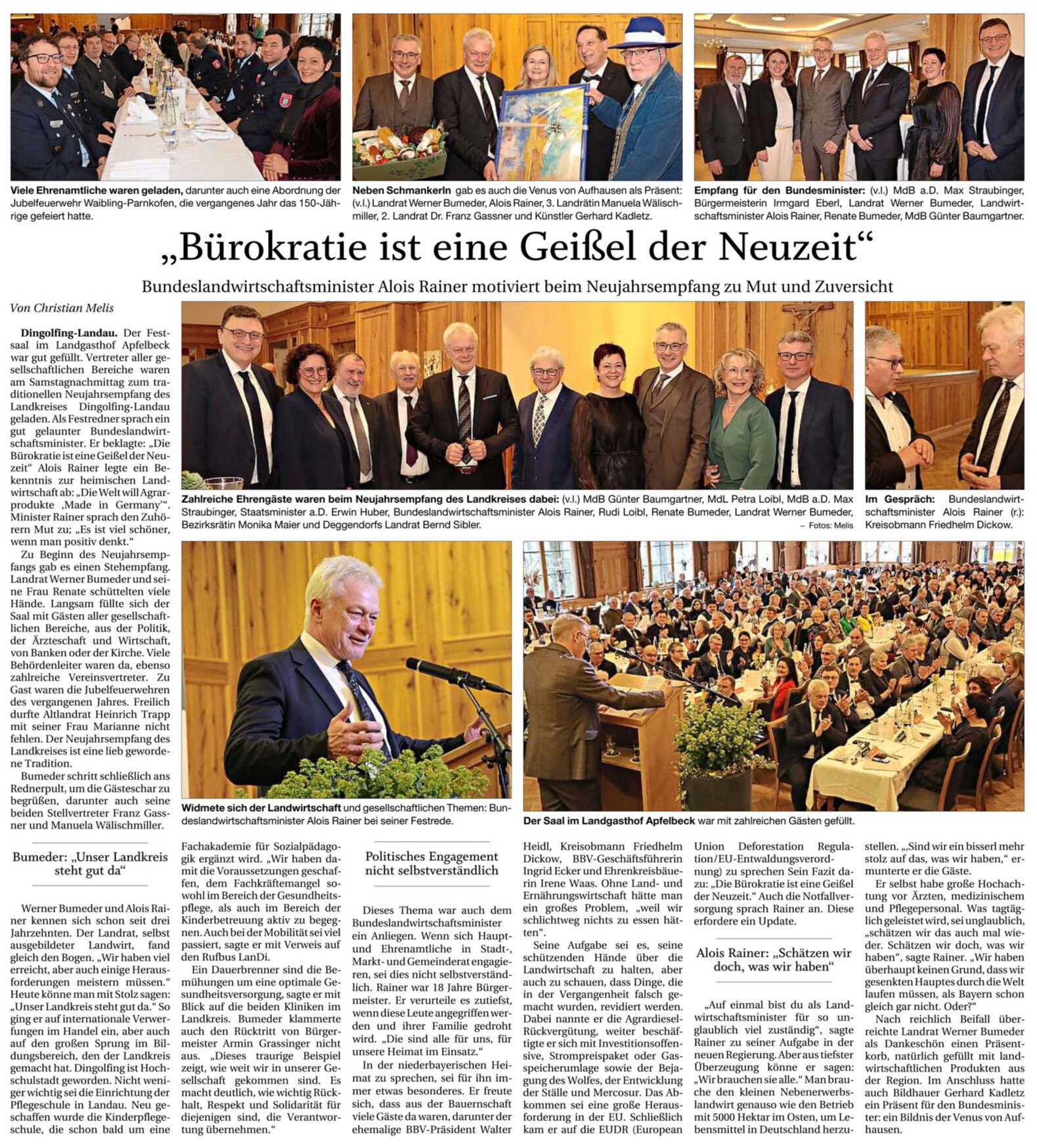 Bundeslandwirtschaftsminister Alois Rainer motiviert beim Neujahrsempfang zu Mut und Zuversicht