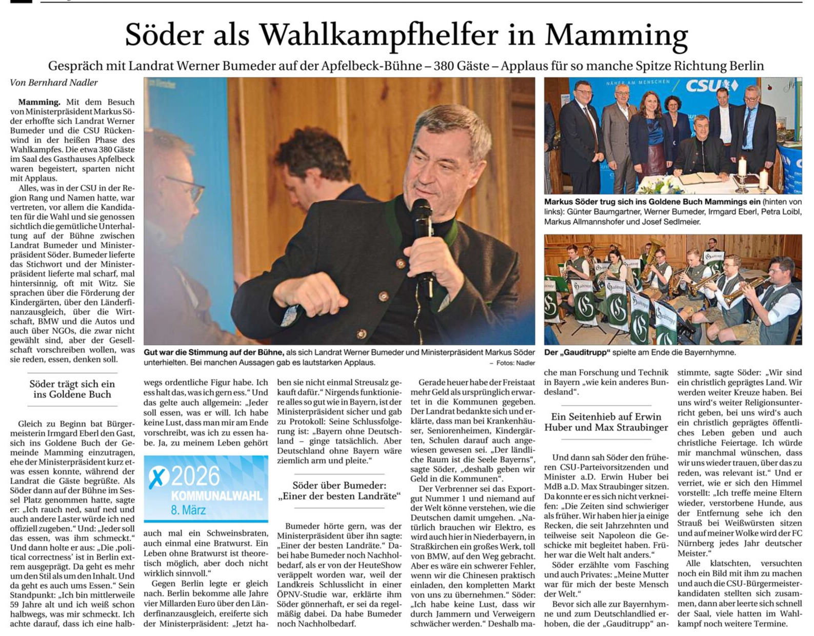 Gespräch mit Landrat Werner Bumeder auf der Apfelbeck-Bühne - 380 Gäste - Applaus für so manche Spitze Richtung Berlin