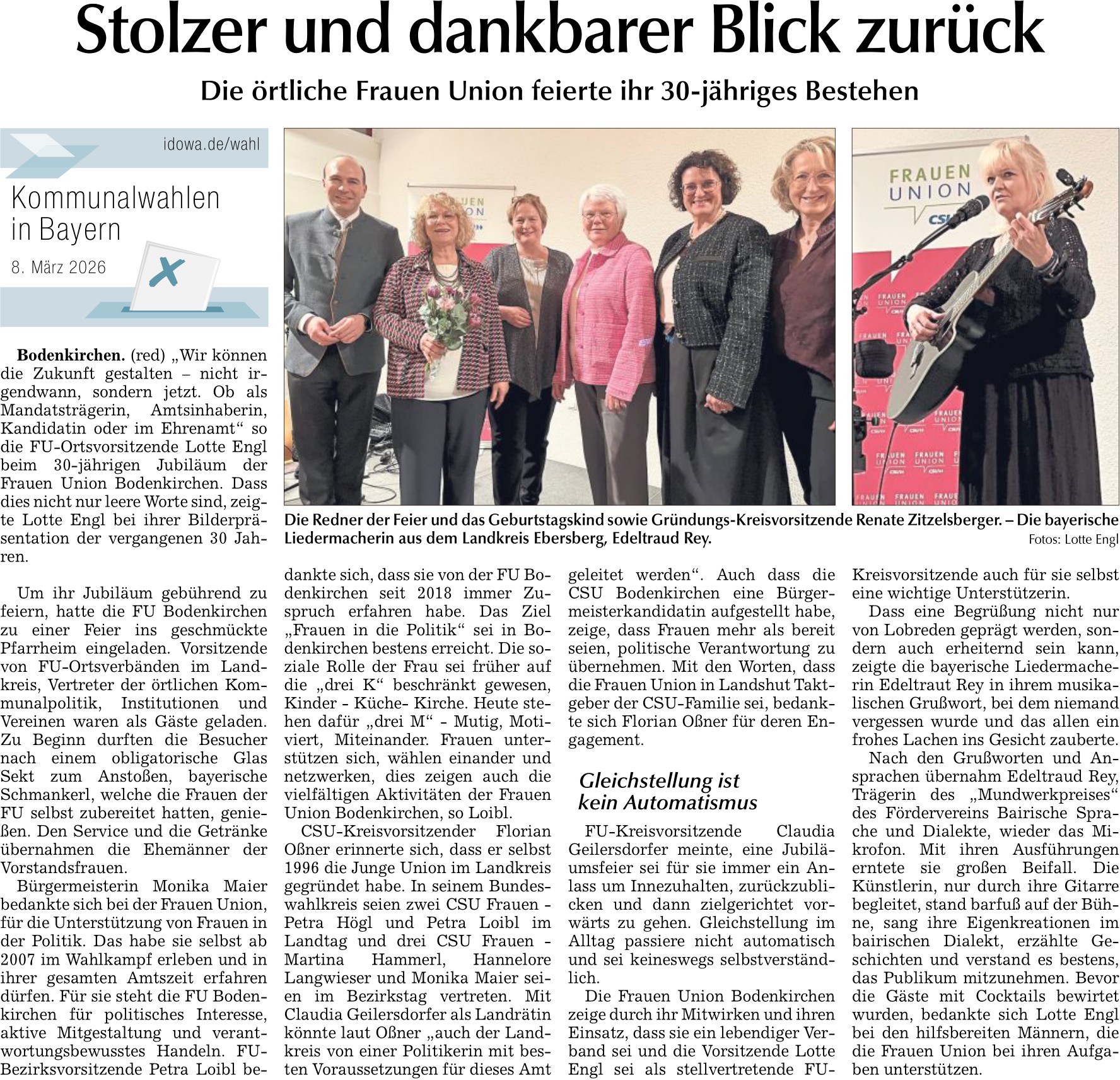 Die örtliche Frauen Union feierte ihr 30-jähriges Bestehen