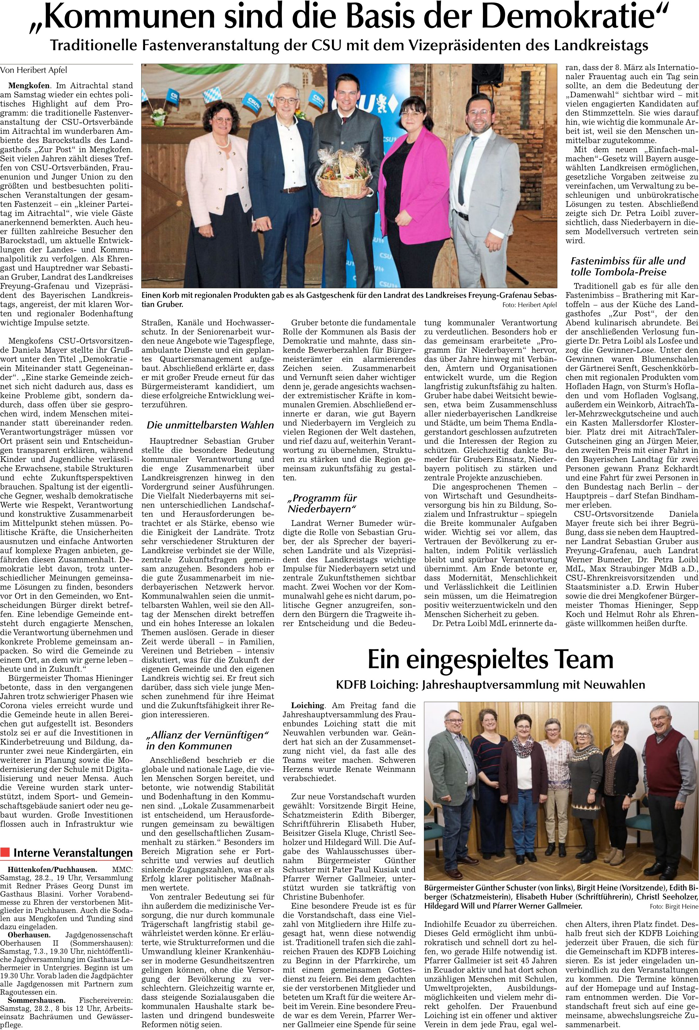Traditionelle Fastenveranstaltung der CSU mit dem Vizepräsidenten des Landkreistags