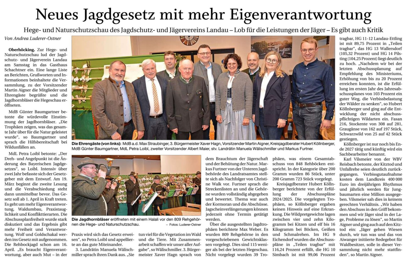 Hege- und Naturschutzschau des Jagdschutz- und Jägervereins Landau - Lob für die Leistungen der Jäger - Es gibt auch Kritik