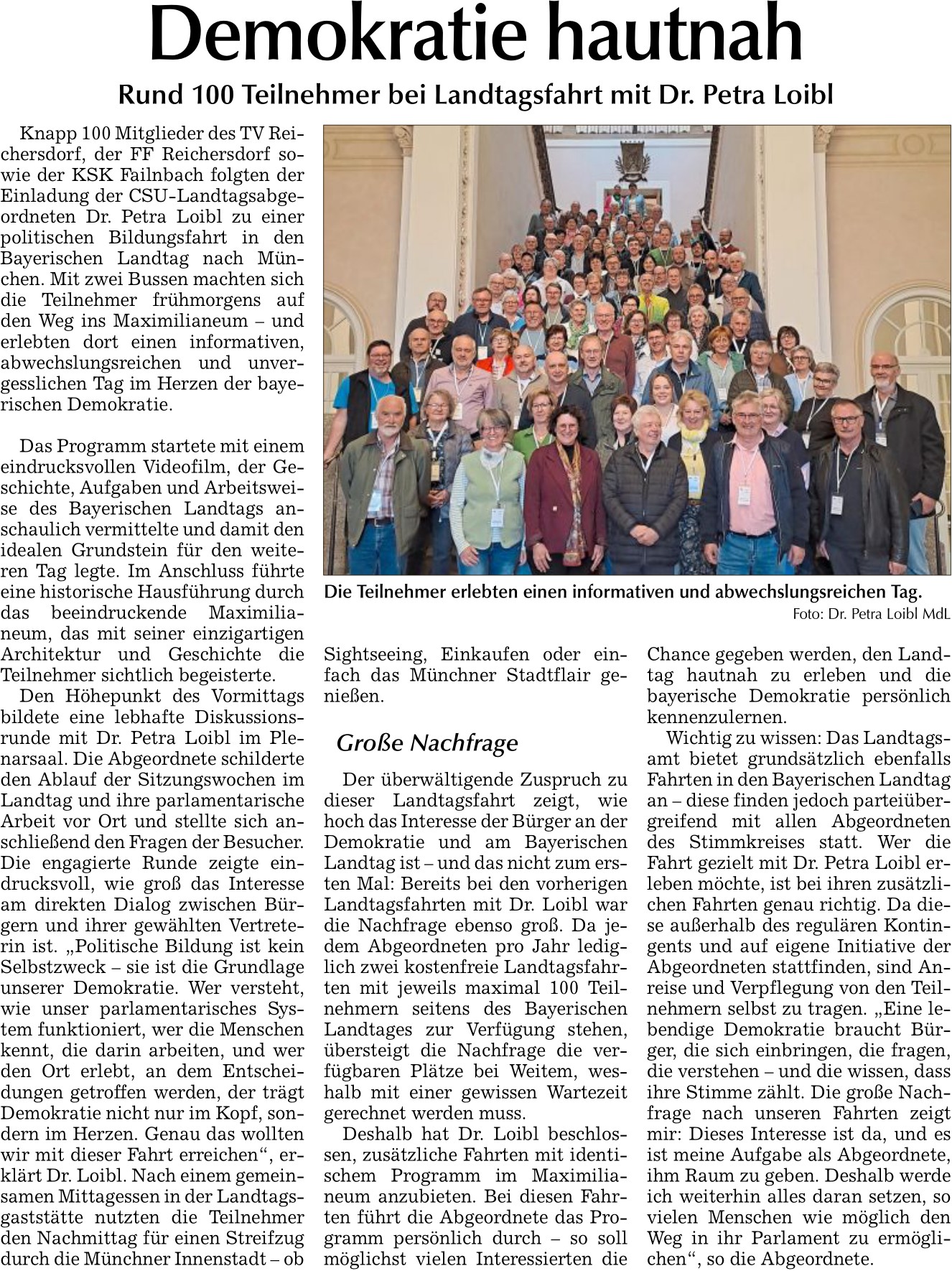 Rund 100 Teilnehmer bei Landtagsfahrt mit Dr. Petra Loibl