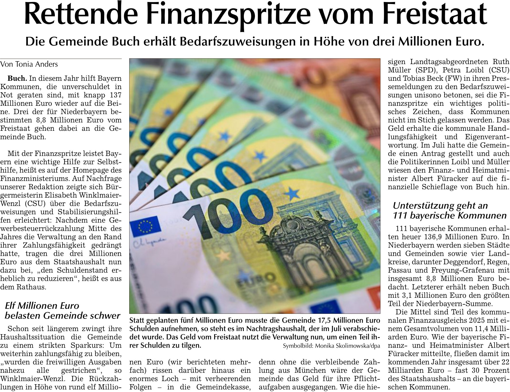 Rettende Finanzspritze von Freistaat