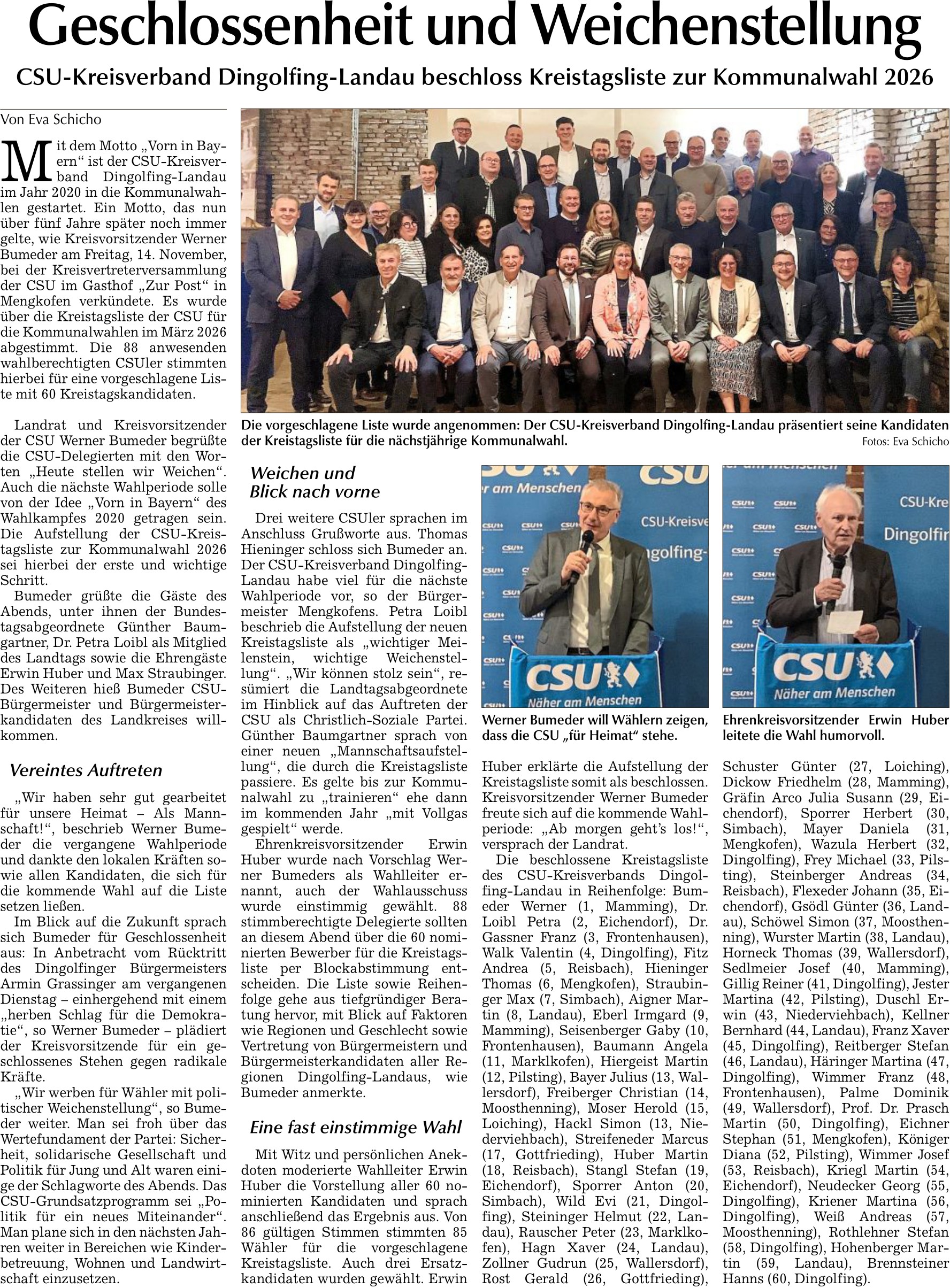 CSU-Kreisverband Dingolfing-Landau beschloss Kreistagsliste zur Kommunalwahl 2026