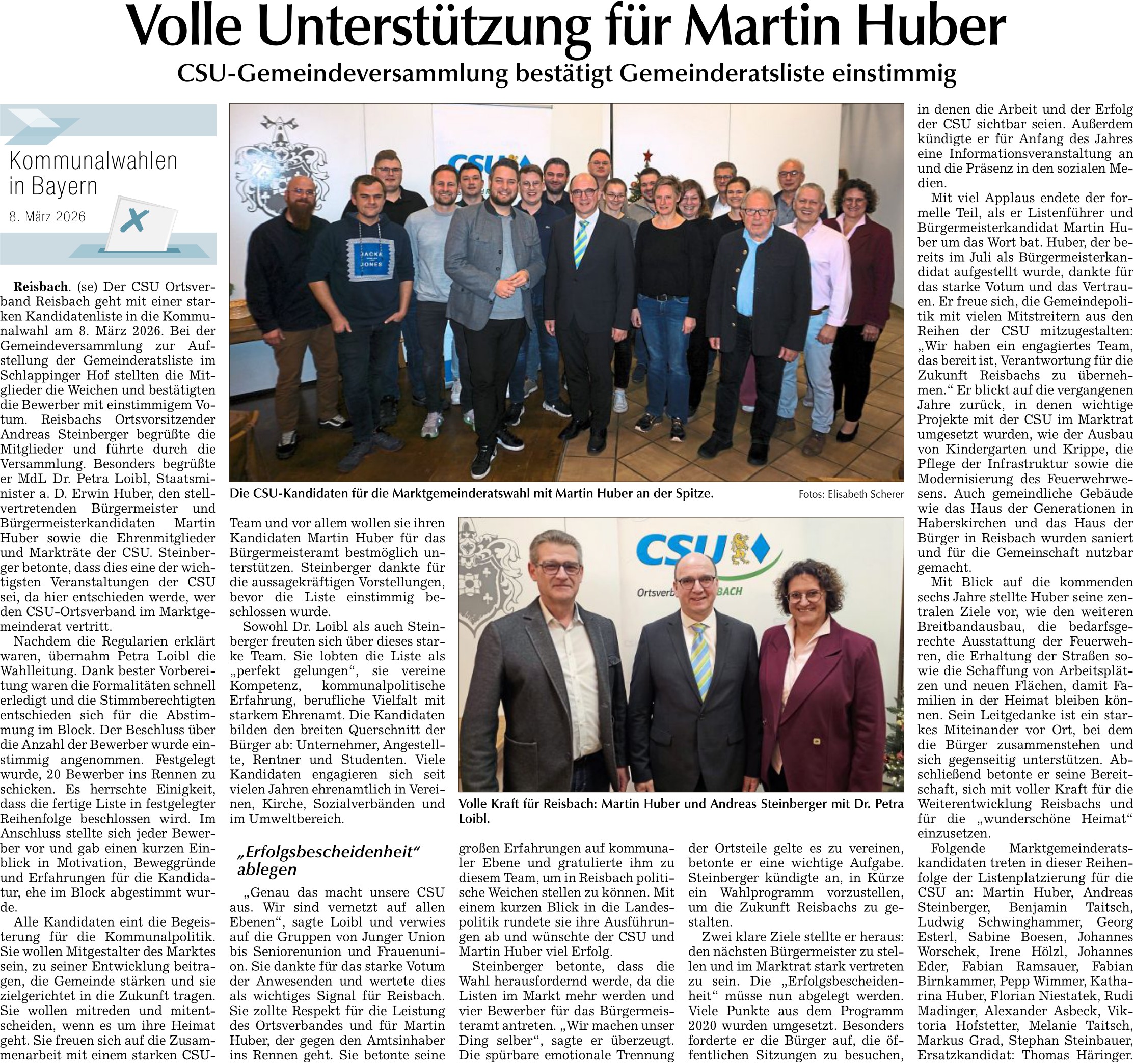 CSU-Gemeindeversammlung bestätigt Gemeinderatsliste einstimmig