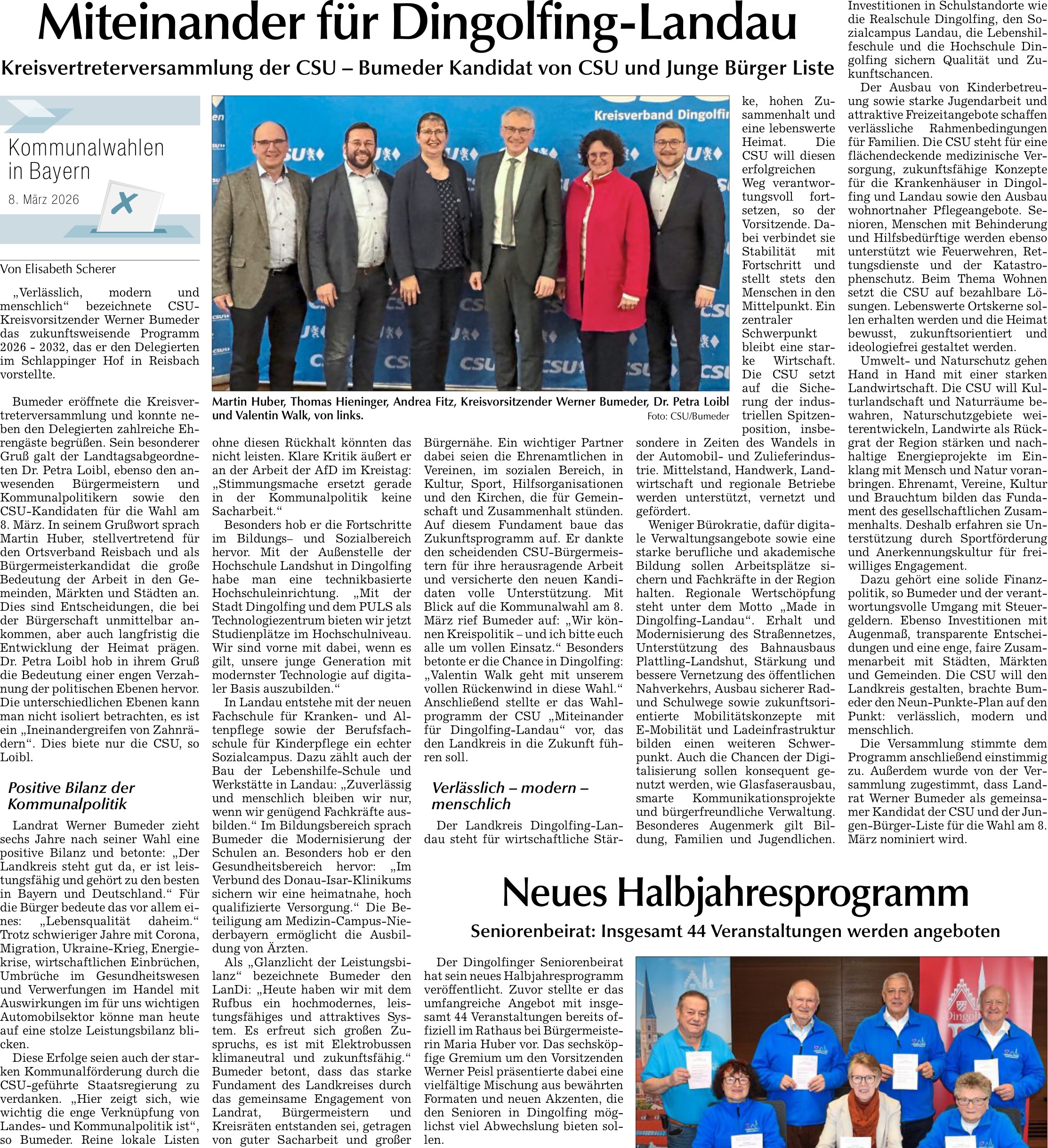 Kreisvertreterversammlung der CSU - Bumeder Kandidat von CSU und Junge Bürger Liste