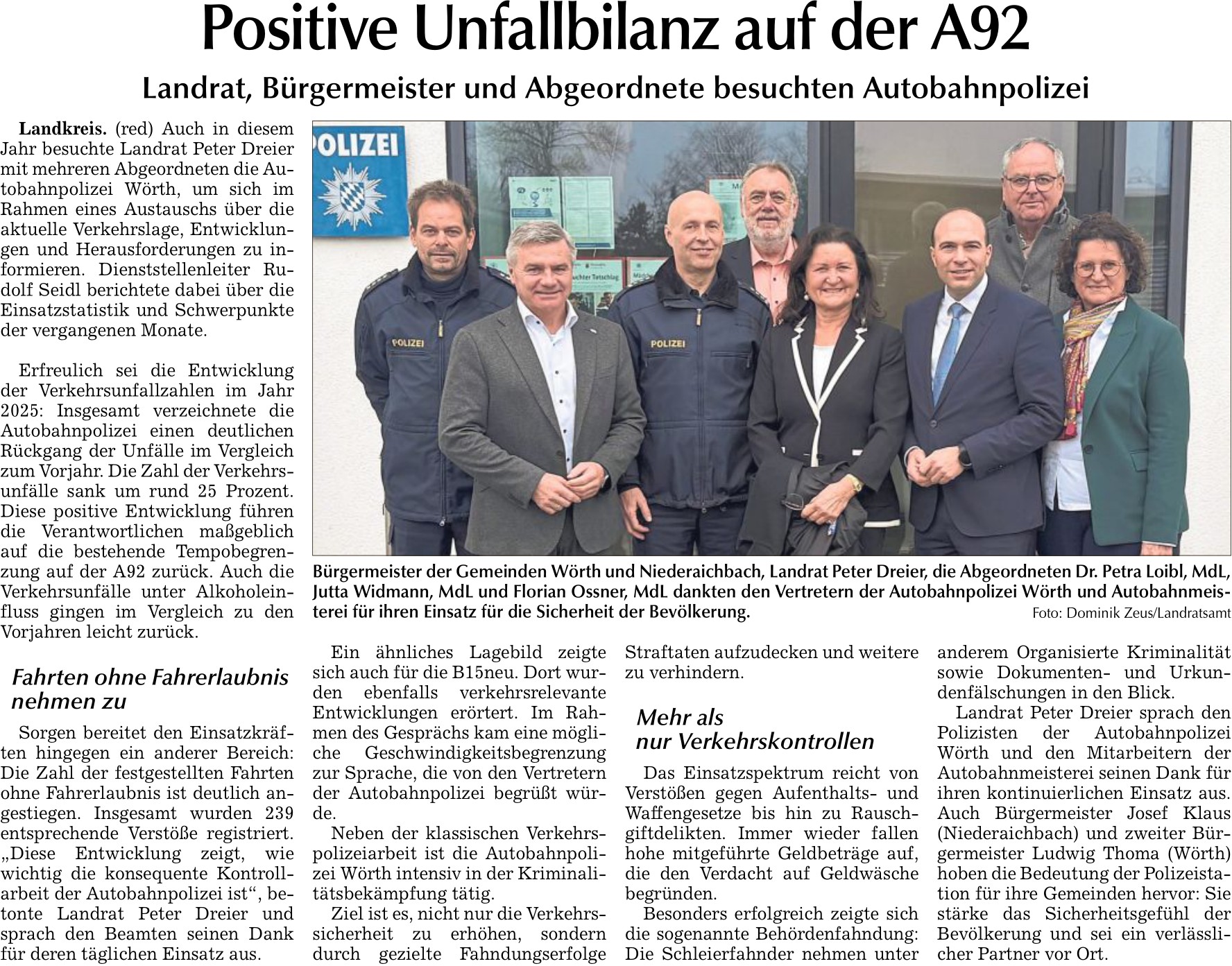 Landrat, Bürgermeister und Abgeordnete besuchen Autobahnpolizei